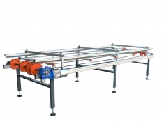 Le cinghie di trasporto possono essere 2 o 4 in base alle dimensioni del materiale da trasportare. E\' dotata di guide laterali che mantengono il materiale trasportato centrale rispetto alla linea impedendo di farlo sbandare o girare.